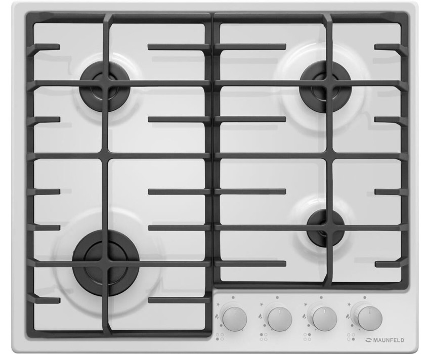 Варочная панель газовая MAUNFELD Газовая варочная панель EGHE.64.6CW/G, 4 конфорки, эмалированная сталь, белый