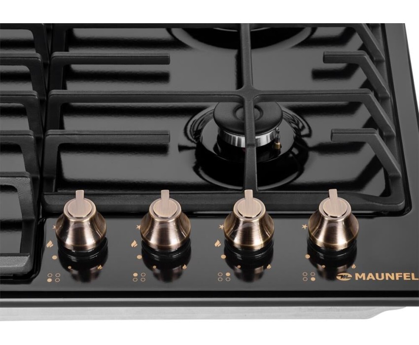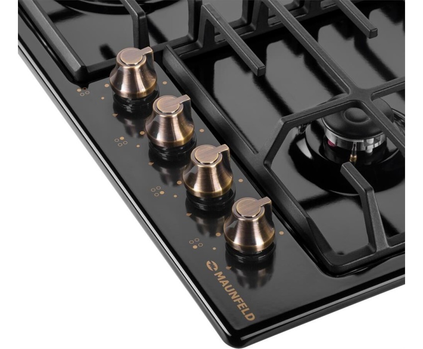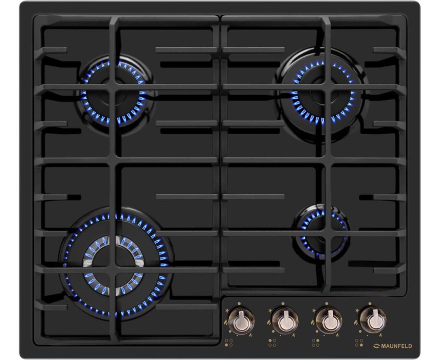 Варочная панель газовая MAUNFELD Газовая варочная панель EGHE.64.63CB.R/G, 4 конфорки, эмалированная сталь, черный