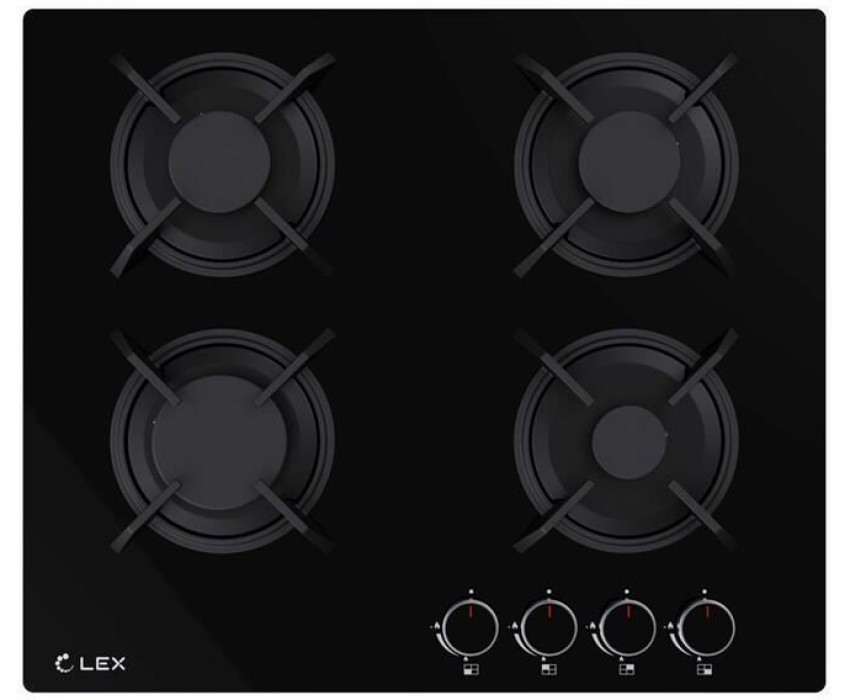 Варочная панель газовая LEX Газовая варочная панель GVG 643 BBL, 4 конфорки, закаленное стекло, черный