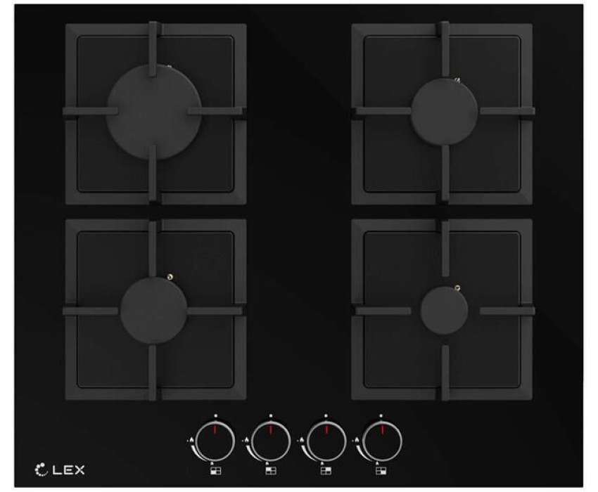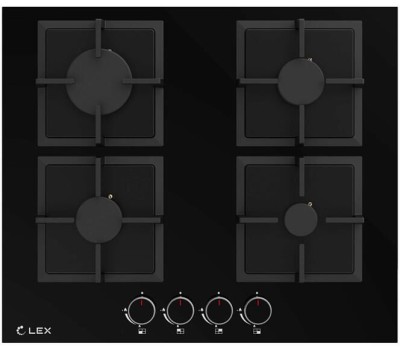 Варочная панель газовая LEX Газовая варочная панель GVG 644 BBL, 4 конфорки, закаленное стекло, черный