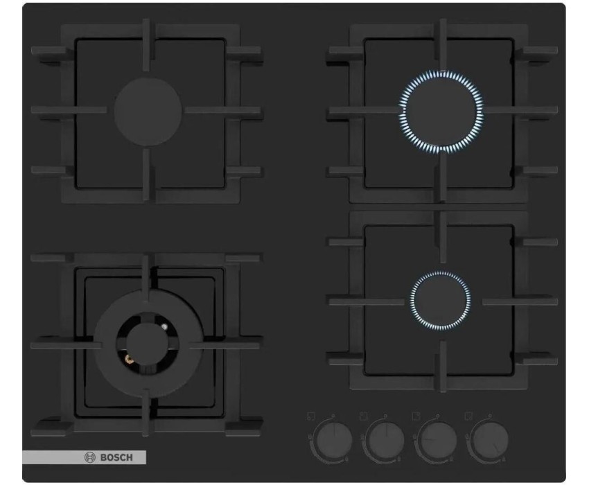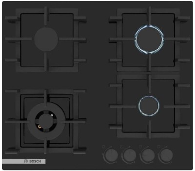 Варочная панель газовая BOSCH Газовая варочная панель PNK6B6P40R, 4 конфорки, закаленное стекло, черный