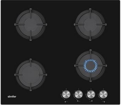 Общие данные: Габариты: -х59х52 см Габариты ниши для встраивания: -х56х49 см Рабочая поверхность: закаленное стекло Количество конфорок: 4 газовые Мощность: 1 х конфорка повышенной мощности 3000 Вт. 2 х стандартные конфорки 1750 Вт. 1 x экономичная конфорка 1000 Вт. Автоматический розжиг Управление и функции: Фронтальная панель управления Дополнительная информация: Чугунные решётки Жиклёры для баллонного газа