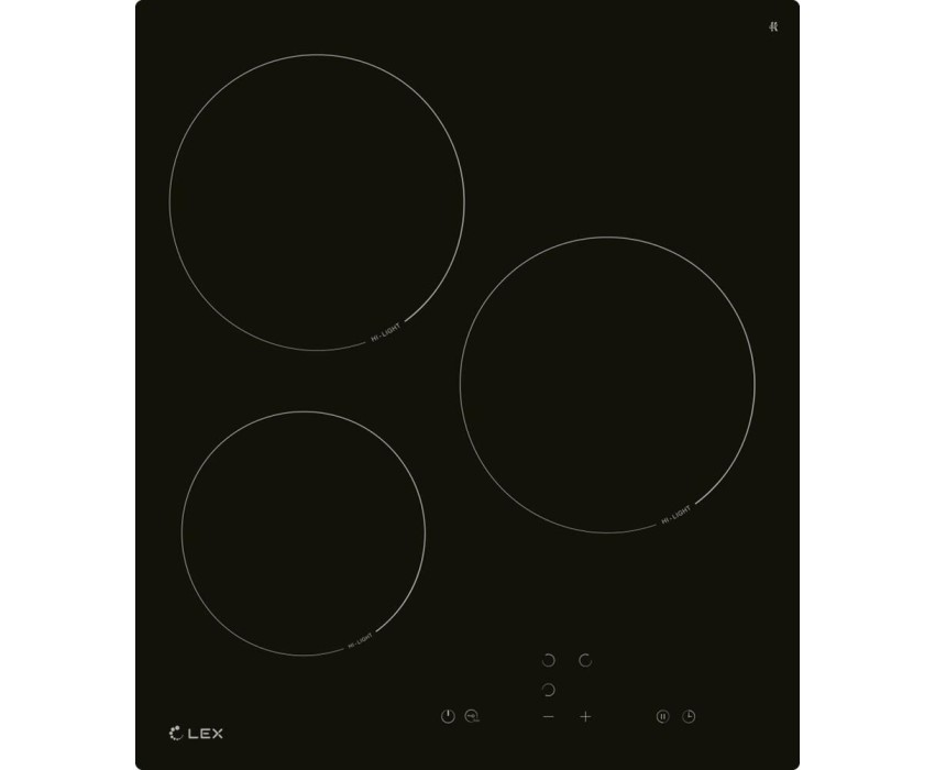 Тип: Электрическая варочная панель; Размер устройства (ВхШхГ): 5,1х45×52 см; Размер для встраивания (ВхШхГ): 42х49 см; Цвет: Черный; Управление: Сенсорное, Таймер; Нагревательный элемент: Hi Light; Материал: Стеклокерамика; Мощность: 4800 Вт; Количество конфорок: 3 конфорки; Защита от перегрева, Индикатор остаточного тепла, Кнопка блокировки панели; Длина силового кабеля: 100 см