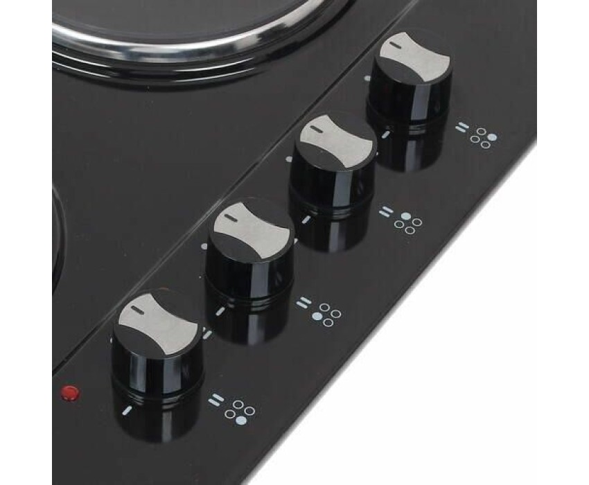 Установка рабочей поверхности: независимая. Материал рабочей поверхности: эмаль. Количество электрических конфорок: 4. Управление: механическое. Класс энергопотребления: A. Мощность подключения: 6. Минимальная толщина столешницы: 30. Вес (нетто): 9. Тип: электрическая. Расположение панели управления: сбоку. Общее количество конфорок: 4. Габариты упаковки (ед) ДхШхВ: 0.68x0.56x0.12. Вес упаковки (ед): 9.56. Страна производства: Турция. Гарантия: 36 мес.. Левая дальняя конфорка: мощность 1.5 кВт, размер 150 мм. Правая дальняя конфорка: мощность 1.5 кВт, размер 185 мм. Левая ближняя конфорка: мощность 1.5 кВт, размер 185 мм. Правая ближняя конфорка: мощность 1.5 кВт, размер 150 мм. Цвет: черный. Размеры ниши для встраивания (ШхГxВ): 540x490. Размеры(ШхГхВ): 590х520х51 мм. Тип конфорок: чугунные. Тип переключателей: поворотные. Количество конфорок: 4. Материал поверхности: эмаль. Переключатели: сбоку, поворотные