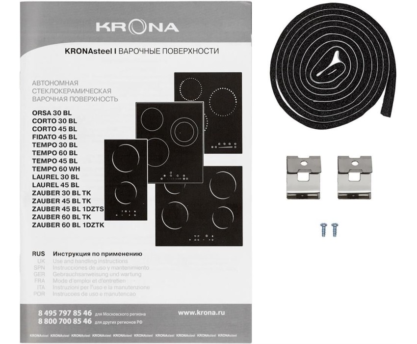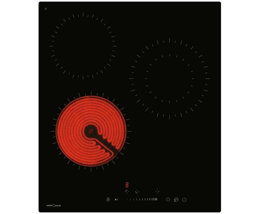 KRONA Электрическая варочная поверхность 45 BL 1DZTS, конфорок: 3 шт., стеклокерамика, независимая, черный