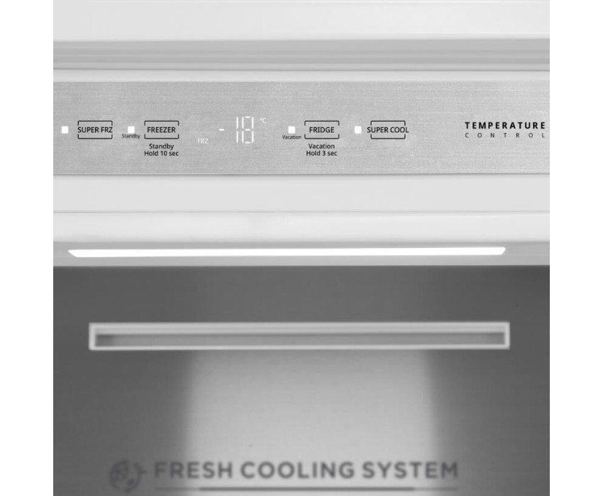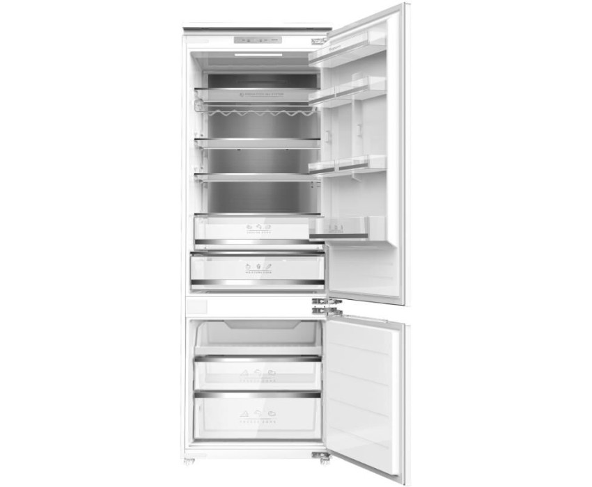 Габариты ШхВхГ, см: 70,6х195,3х55,8; Цвет: Белый; Количество камер: 2; Общий объем: 403 л; Полезный объем холодильной камеры: 298 л; Объем морозильной камеры: 105 л; Количество компрессоров: 1; Тип компрессора: Инверторный; Расположение морозильной камеры: Нижнее; Система Full No Frost; Максимальный уровень шума: 29 дБ; Класс энергоэффективности: A+++; Возможность перевешивания двери; Автономное сохранение холода: 12.5 ч; Управление Электронное; Количество ящиков в морозильном отделении; 2; Освещение: LED; Зона свежести; Суточный расход электроэнергии, при температуре окружающего воздуха 24°C.: 5 кВтч; Мощность замораживания: 6 кг/сутки; Размораживание морозильной камеры: No Frost; Климатический класс: SN,N,ST,T; Комплектация: Ящик для овощей и фруктов, зона свежести Cooling Zone, полка для бутылок, лоток для яиц, форма для льда, выдвижной лоток в морозильном отделении; Доп. функции: Режим Ожидание, режим Отпуск, система охлаждения Metal Cooling, жесткое крепление DOD hinge