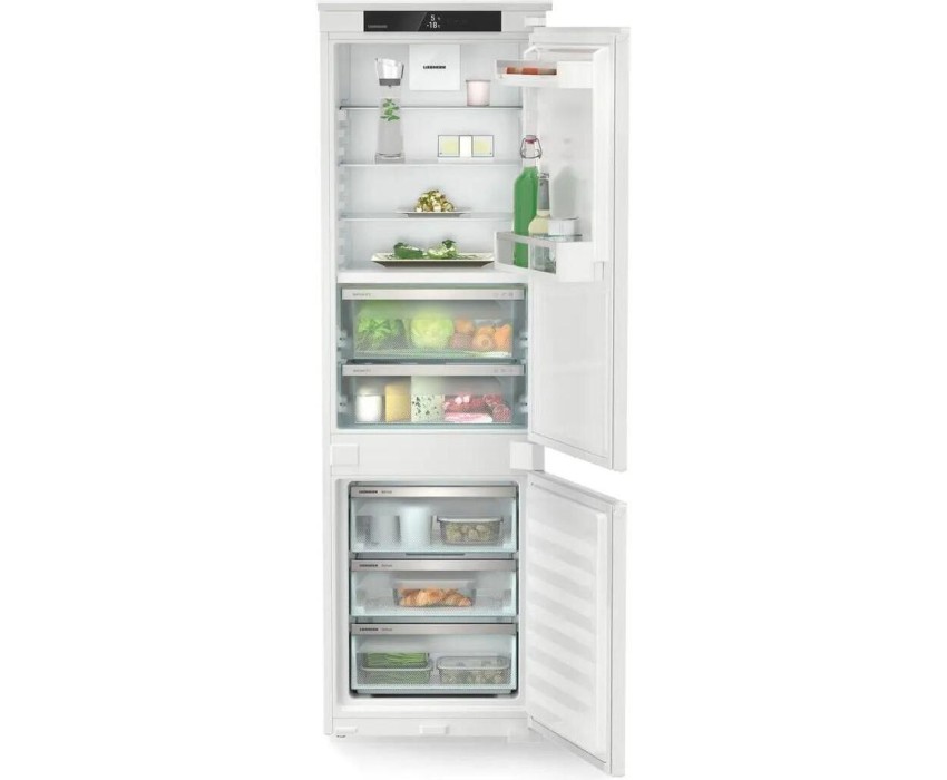 Бренд: LIEBHERR Цвет: белый Тип: Холодильник Количество камер: двухкамерный Модель: ICBNSd 5123 PartNumber/Артикул Производителя: ICBNSD 5123 Размеры: 54.1x177x54.5см Общий объем холодильника: 273 л Полезный объем холодильника: 244 л Полезный объем холодильной камеры: 174 л Полезный объем морозильной камеры: 70 л Количество полок в холодильной камере: 4 Материал полок: стекло Тип размораживания морозильной камеры: No Frost Класс энергопотребления: A++ Расположение морозильной камеры: снизу Количество компрессоров: 1 Тип управления: электронное Количество ящиков в морозильной камере: 3 Размеры для встраивания : 57x178.8x55см Габариты упаковки (ед) ДхШхВ: 0.61x0.57x1.82 м Объем упаковки (ед): 0.632814 м3 Тип встраивания: полновстраиваемый Количество дверей: 2 шт Количество ящиков в холодильной камере: 2 Уровень шума: 36 дБ Мощность замораживания: 10 кг/сут Хранение при отключении питания: 14 ч Потребление энергии: 218 кВт*ч/год Вес товара: 60.3 кг Тип размораживания холодильной камеры: ручное Особенности конструкции: перевешиваемые двери, регулируемые по высоте ножки Функции: защита от детей, суперзаморозка, суперохлаждение Индикация: открытой двери, температуры Особенности холодильника: дисплей Наличие морозильной камеры: ДА Климатический класс: SN, T Вес упаковки (ед): 63.8 кг Зона свежести: ДА Общий объем холодильной камеры: 182.7 л