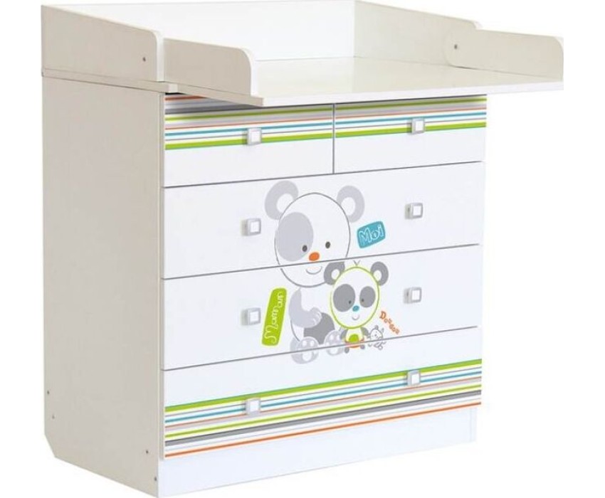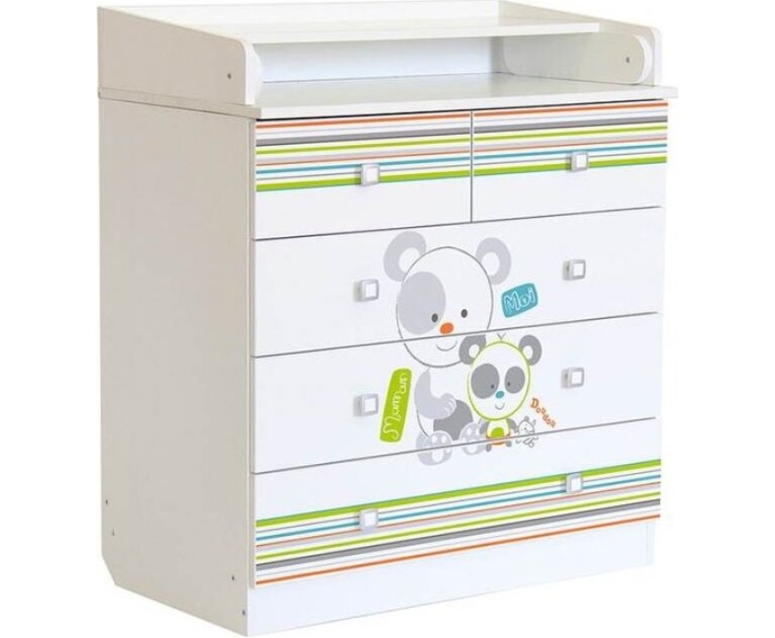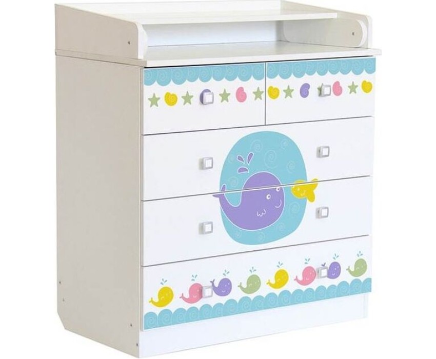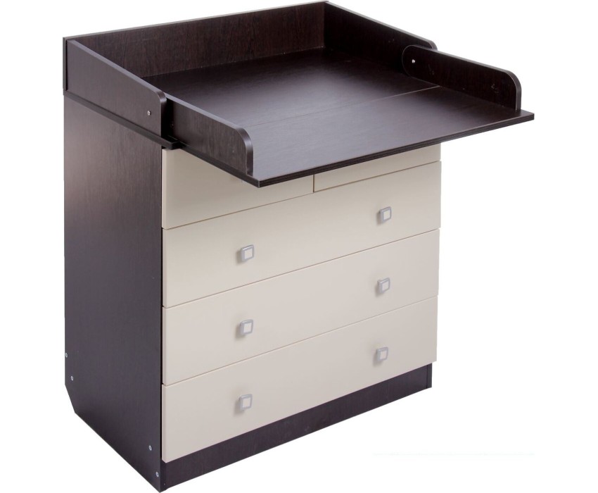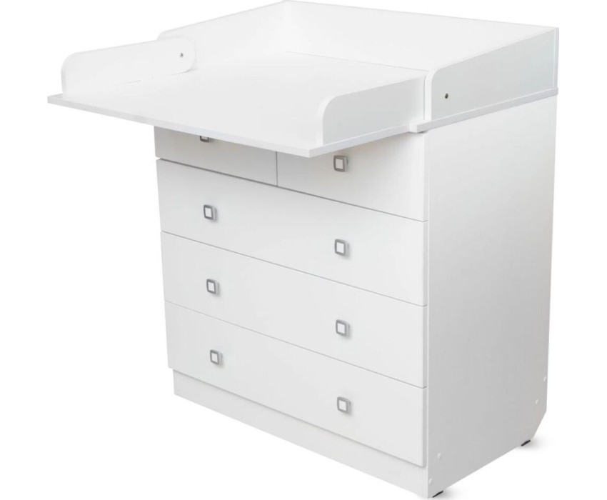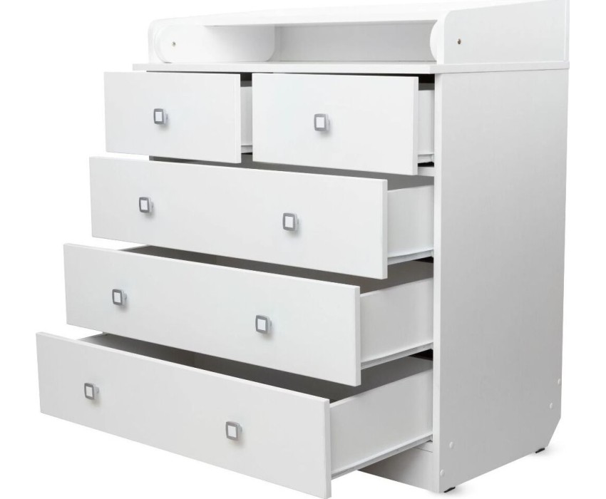 Комод 1780 имеет откидную пеленальную поверхность с бортиками по бокам. Пеленальная доска снимается. Комод состоит из 5 ящиков с эргономичными ручками. Ящики с роликовыми направляющими. Габариты, см (Д*Ш*В): 47,4*80,4*91,7