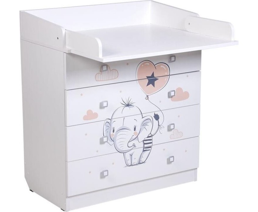 Комод имеет откидную пеленальную поверхность, которая снимается. Фасад и корпус выполнен из ЛДСП производства Kronospan (Австрия). Состоит из 4 ящиков с эргономичными ручками. Ящики на роликовых направляющих. Габариты (ВхШхГ): 92,2х80,4х46,7см. Размер пеленального матрасика на комод: 72х77 см..