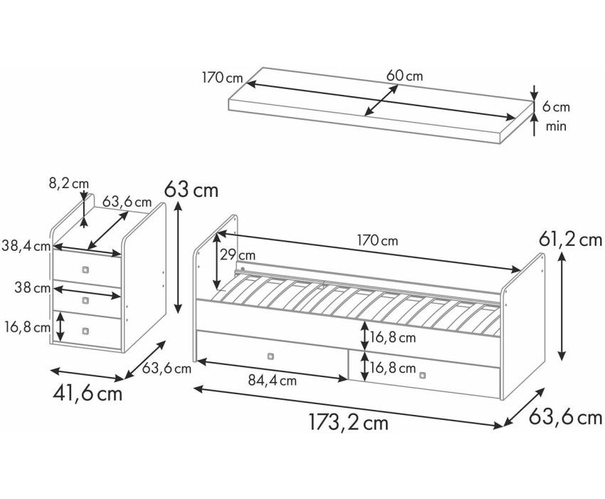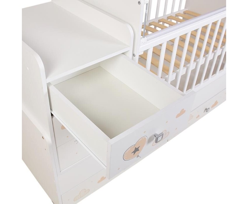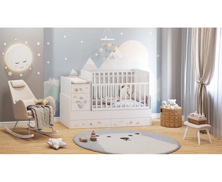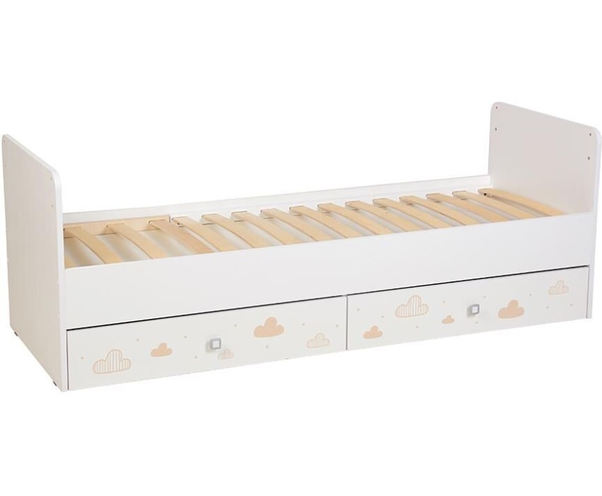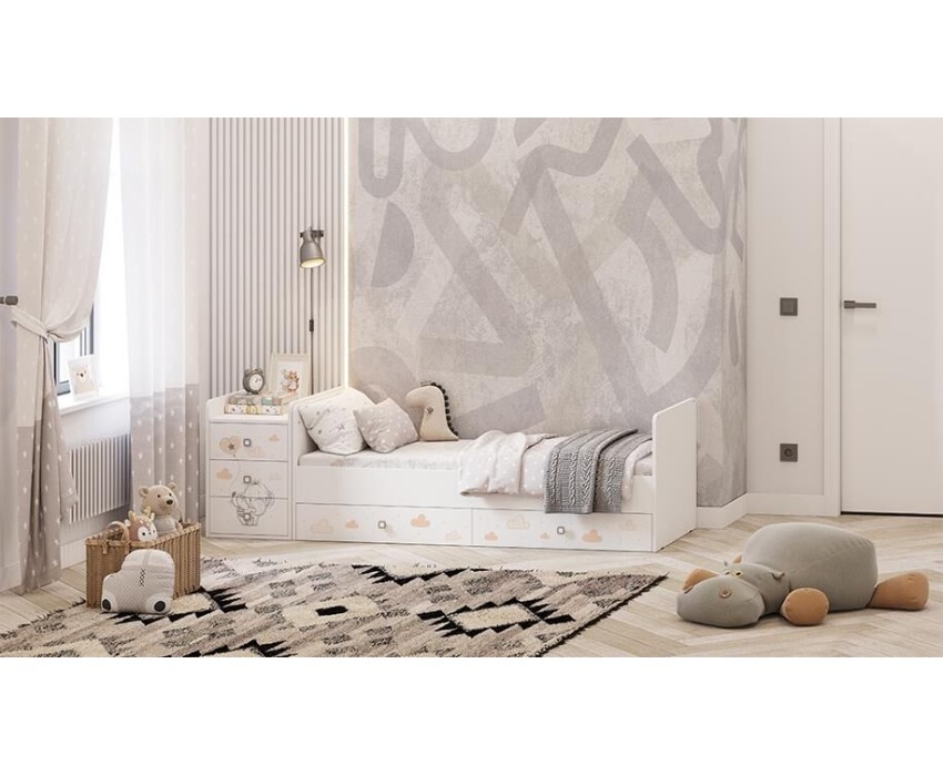 Кровать - трансформер Фея 1100 с комодом имеет 3 положения высоты ортопедического ложа. Днище реечное. В основании кровати 2 вместительных ящика. Комод кроватки имеет пеленальную поверхность с закругленными бортиками по бокам. Установка комода возможна как с правой, так и с левой стороны. В комод входят 3 ящика. На боковых стенках кровати силиконовые накладки. Механизм опускания боковой планки- кнопка. Трансформер имеет маятниковый механизм поперечного качания. Стандартный размер детского ложа – 60 х 120 см. Трансформируется в подростковую кровать, где размер ложа 60 х 170 см., и независимую приставную тумбу. Кровать можно использовать с 0 до 10 лет. Изготовлено из материала: ЛДСП+ массив березы (реечное ложе). Размер кровати (ВхДхШ) – 108,5 х 173,2 х 63,6 см. Размер детского ложа – 60 х 120 см. Размер подросткового ложа – 60 х 170 см Размер тумбы (BхШхГ) – 63 х 41,6 х 63,8 см