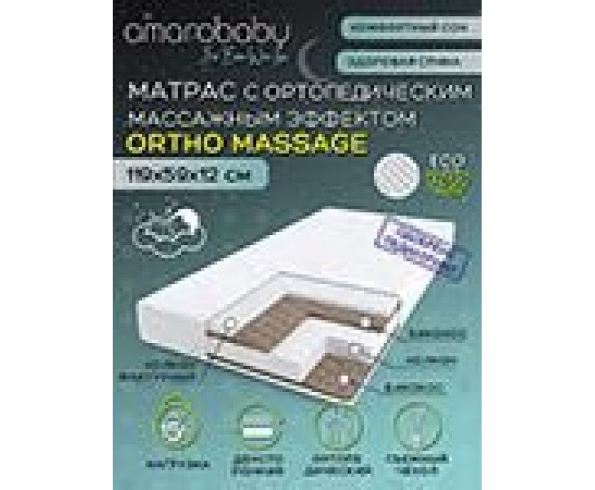 Матрас Amarobaby Ortho Massage - это матрас с ортопедическим массажным эффектом. Оптимальное и грамотное сочетание цены и качества. Особенности: ЭФФЕКТ МИКРОМАССАЖА. Натуральные материалы. Две стороны разной степени жёсткости. Съемный чехол. Для детей от рождения. Размер: 119 х 59 х 12 см В жизни крохи сон занимает очень важное место. От правильно подобранного матраса зависит правильное распределение нагрузки на позвоночник, стабильное развитие костной системы и, что не мало важно, правильная осанка малыша, и как результат - здоровье ребенка в целом! Матрасы Amarobaby адаптированы для малышей с рождения. Преимущества: 1. Две стороны матраса разной степени жесткости. 2. Уникальная технология ортопедической и анатомической пены создает эффект микромассажа. Это позволит малышу крепко уснуть и сладко спать всю ночь. Ортопедическое основание поддерживает спину и обеспечивает правильное формирование позвоночника младенца. А массажный эффект нежно снимет повышенный тонус мышц, поможет кровообращению улучшит качество сна и иммунитет крохи. 3. Современный наполнитель холлкон из полиэфирных волокон, изготовленный по новейшей технологии: волокна в форме спиралей укладываются вертикально, переплетаясь и скрепляясь между собой без использования дополнительных клеящих веществ. Холлкон при давлении мгновенно восстанавливает свою форму. 4. 100% натуральный материл - кокосовая койра - один из самых упругих и эластичных наполнителей. Он идеально поддерживает позвоночник крохи во время сна, з…