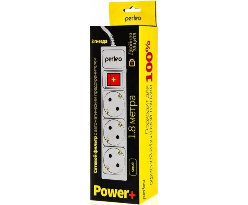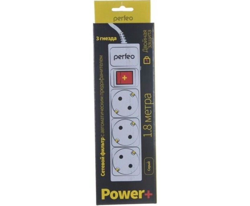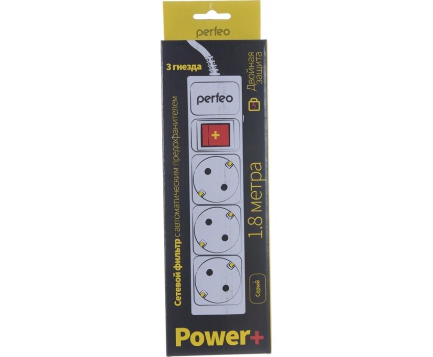 сетевой фильтр PERFEO (PF_A4665) "POWER+" - 3 роз - 1,8м - серый