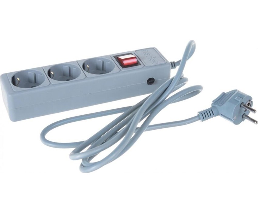 Cетевой фильтр, количество розеток - 3 (евростандарт с заземлением), номинальный ток нагрузки - 10А, номинальное входное напряжение - 220В, корпус из ударопрочного негорючего материала, длина кабеля - 1,8 м.
