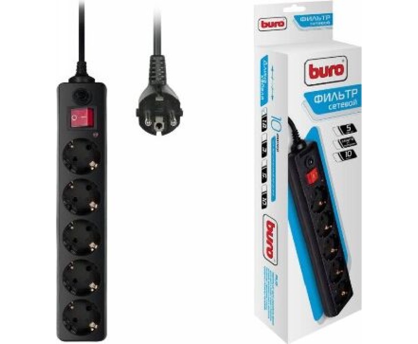 Сетевой фильтр BURO 500SH-1.8-B 1.8м 5 розеток черный