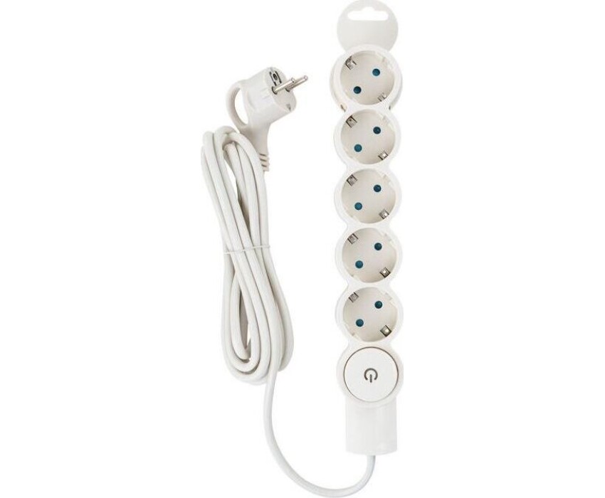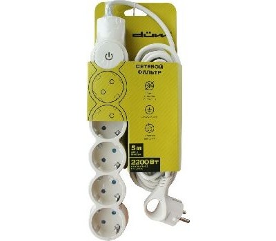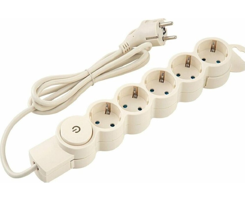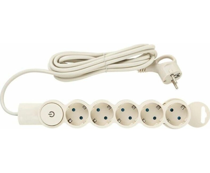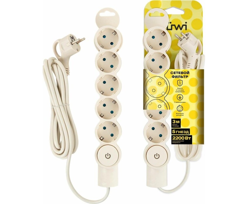 Сетевой фильтр 5 гнезд, с выключателем, с заземлением, 10А/2,2кВт, 3м, слоновая кость