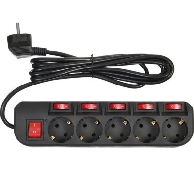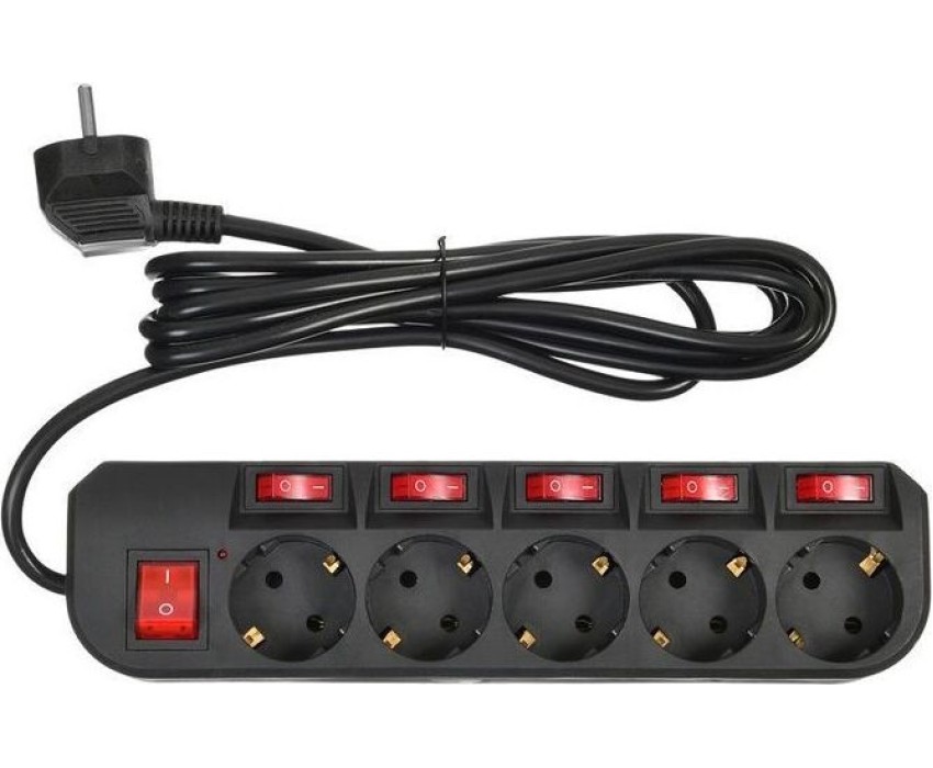 Омедненный (CCA) основной силовой кабель и все проводники. Длина шнура - 1,8м. Количество выходных розеток - 5. Входная вилка, тип - EURO. Выходные розетки с заземлением типа EURO - 5. Номинальное напряжение питающей сети - 220В. Максимальная рассеиваемая энергия - 107Дж. Максимальный импульсный ток помехи - 4500A. Частота сети - 50 Гц. Максимальная нагрузка - 2200Вт. Максимальный ток нагрузки - 10A. Подавление высокочастотных помех. Защита от короткого замыкания - биметаллический размыкатель. Защита от перегрева. Автоматический (термобиметаллический) предохранитель. Подавление импульсных помех. Индивидуальные выключатели розеток . Цвет - черный.