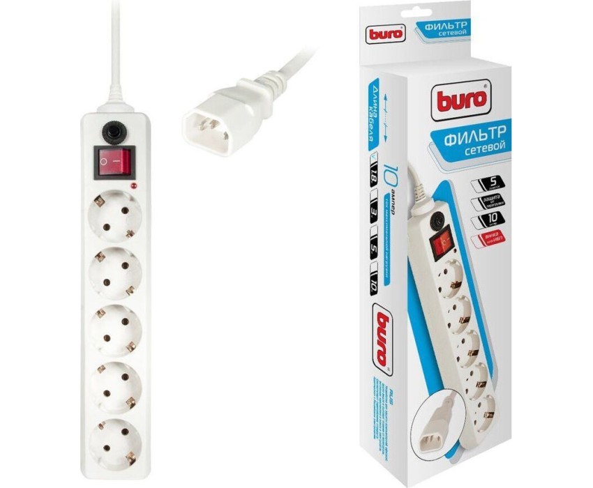 Сетевой фильтр BURO 500SH-1.8-UPS-W 1.8м 5 розеток белый