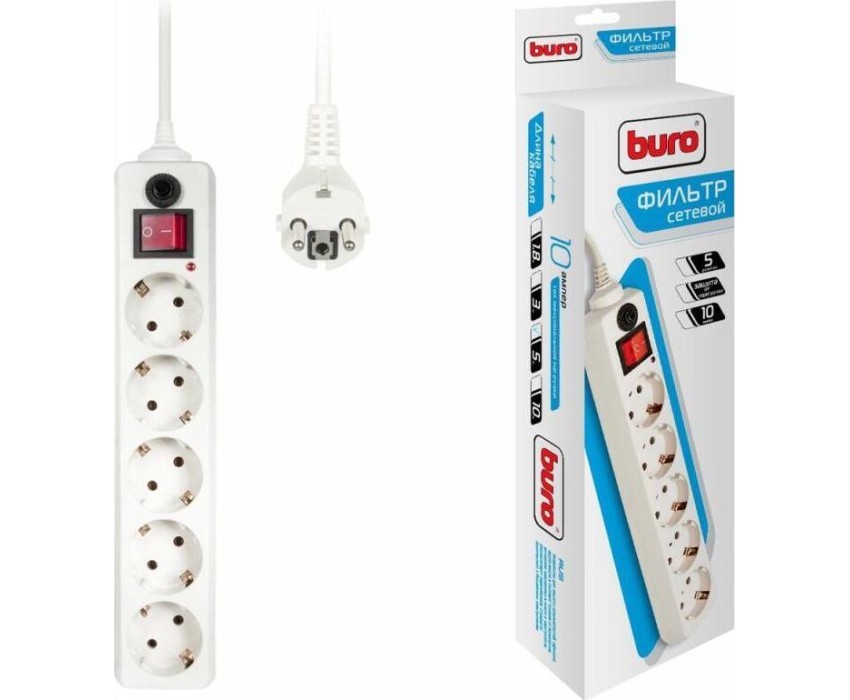 Сетевой фильтр BURO 500SH-5-W 5м 5 розеток белый