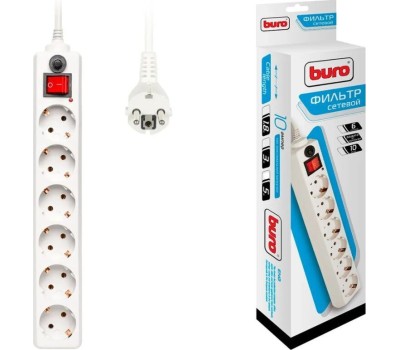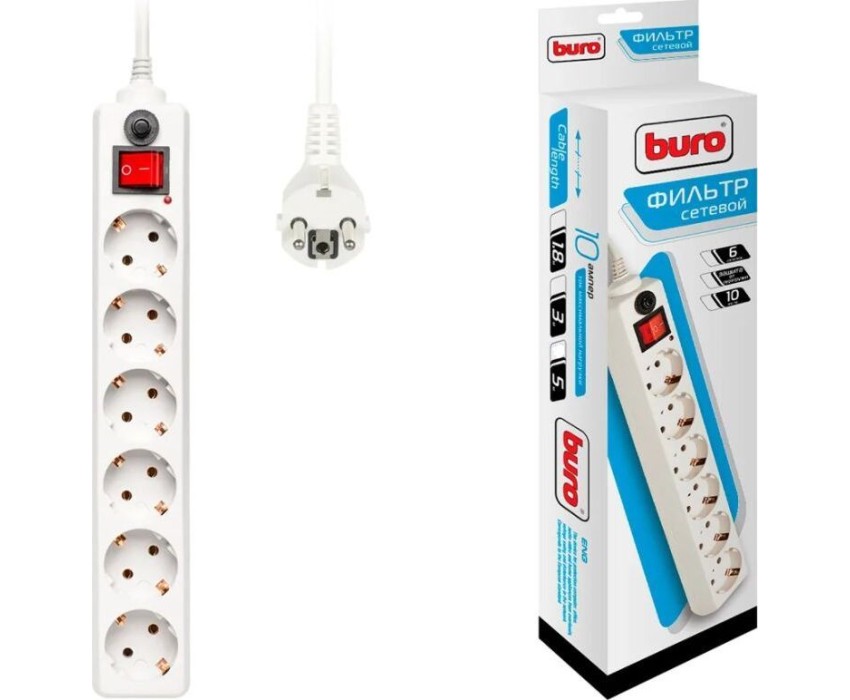 Сетевой фильтр BURO 600SH-1.8-W 1.8м 6 розеток белый