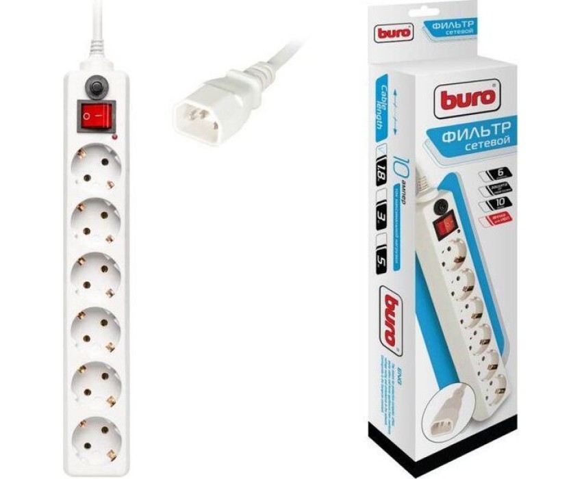 Сетевой фильтр BURO 600SH-1.8-UPS-W 1.8м 6 розеток белый