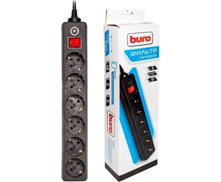 Сетевой фильтр BURO 600SH-5-B 5м 6 розеток черный