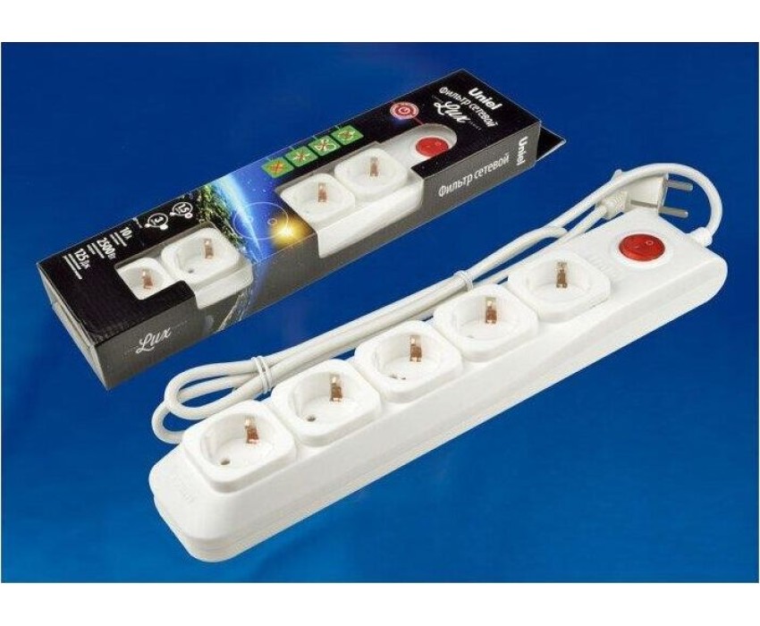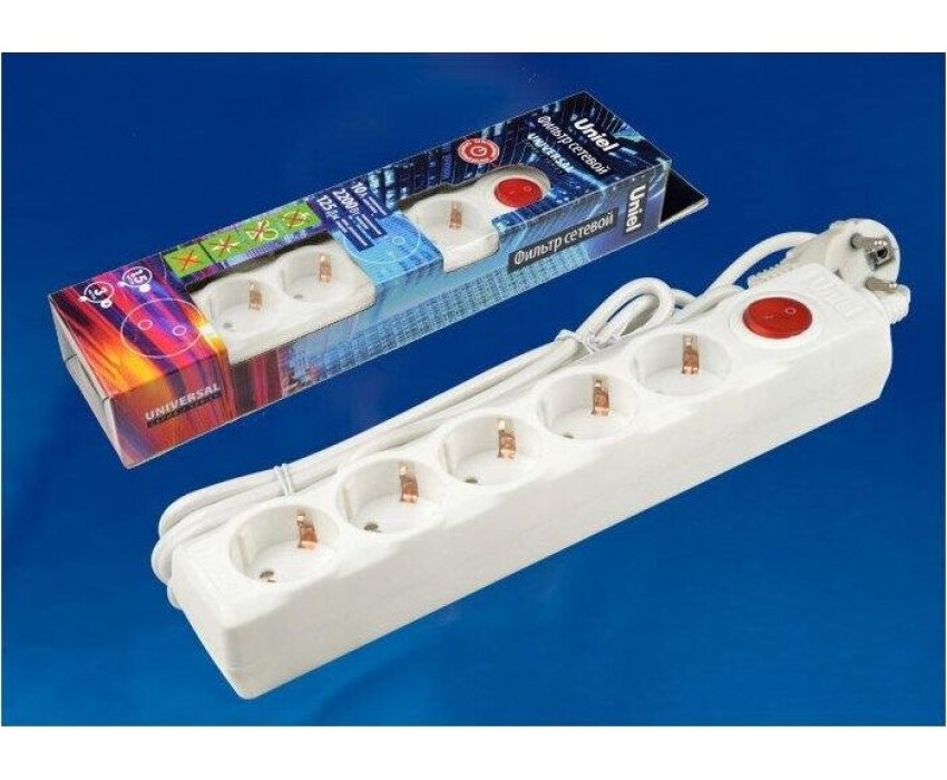 Cетевой фильтр серии Universal, 3м (Пвс 3*0,75), 5 гнезд, с/з. 10А. Защита от перенапряжения, короткого замыкания. (новинка) - Да; Группа эффективности - Оборотный товар; Длина кабеля, м - 3; Заземление - Да; Защита от перегрузки - Да; Количество гнезд, шт. - 5; Максимальная нагрузка, Вт - 2 200; Материал корпуса (изделия) - пластик негорючий; Минимальная партия - 1; Наличие выключателя - Да; Номинальная сила тока, А - 10; Сечение провода, мм2 - 0,75; Срок гарантии, мес. - 12 месяцев; Страна производства - Китай; Цвет корпуса (изделия) - белый