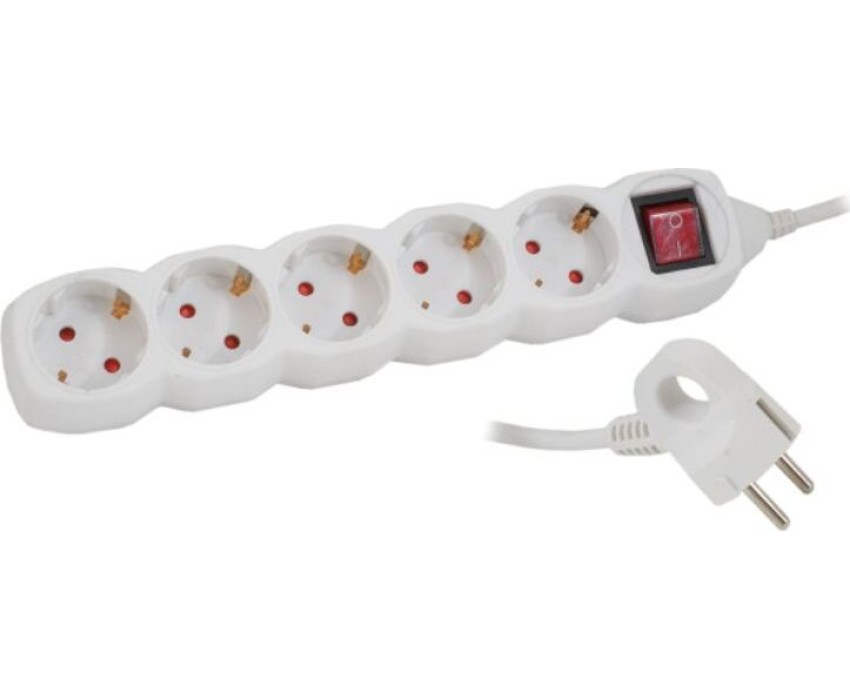 Колодка на 5 розеток Длина провода 3 м. Провод ПВС с сечением 3х0,75 мм2. Заземление Защитные шторки от детей Кнопка включения Макс нагрузка 2200 Вт Сила тока 10 А Эргономичная вилка Материал - негорючий, ударопрочный РР-пластик. Корпус неразборный. Цвет-белый