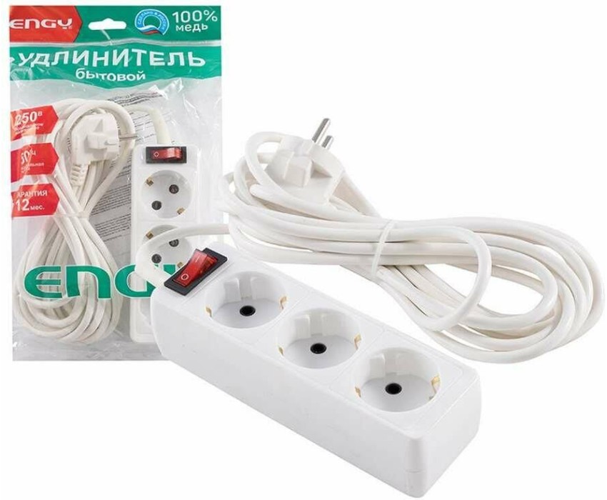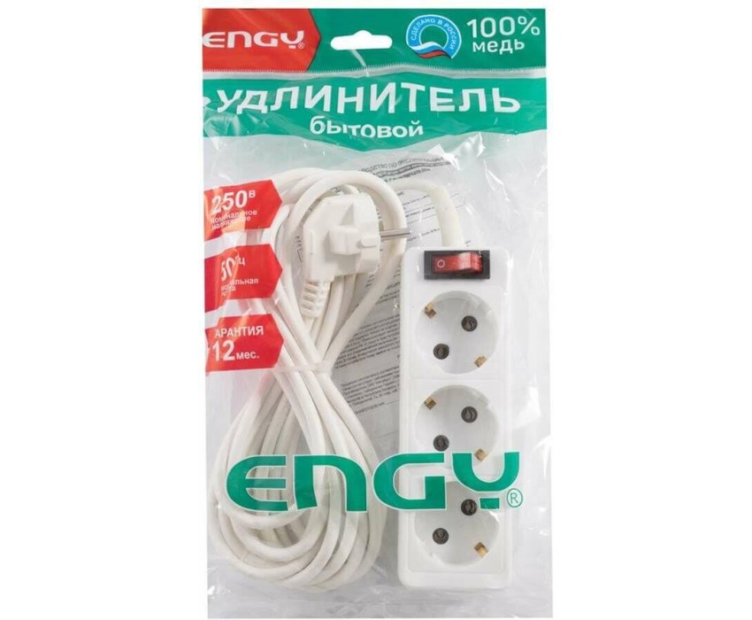 Удлинитель ENGY Удлинитель с выключателем "Гранд" 5м/3роз с/з (ПВС 3х0,75) (186732)