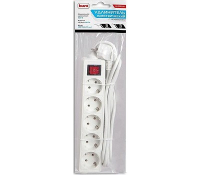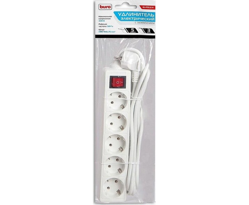 Сетевой удлинитель BURO BU-PS5.3/W 3м (5 розеток) белый (пакет ПЭ)