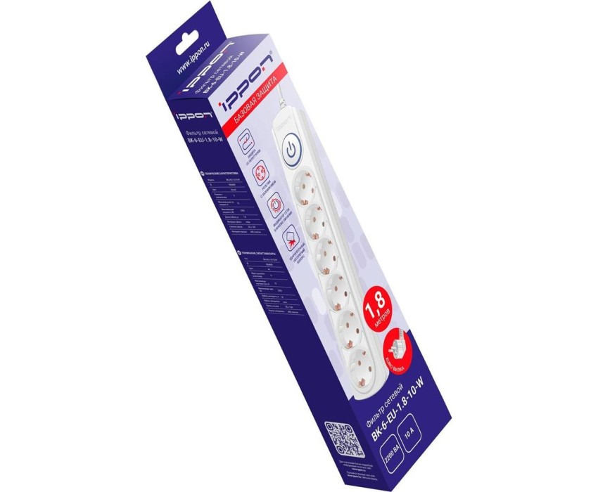 IPPON Сетевой фильтр BK-6-EU-1.8-10-W, 1.8м, белый
