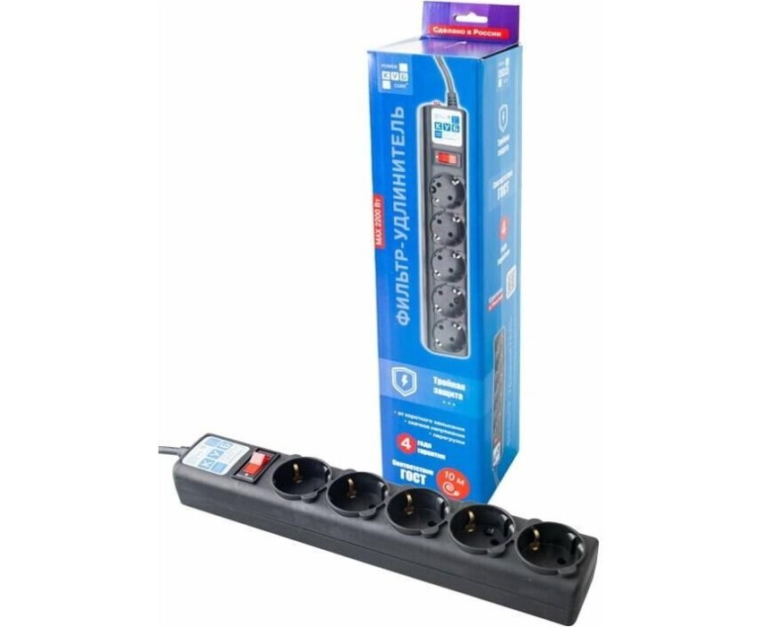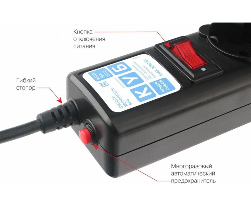 POWERCUBE Сетевой фильтр SPG5-10M, 10м, черный