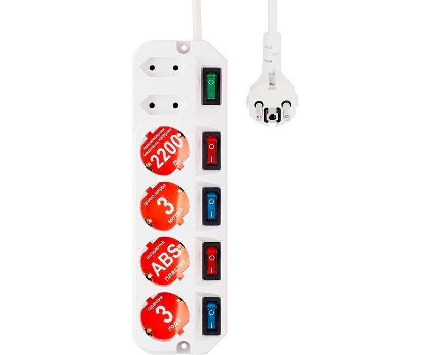 MOST Сетевой удлинитель A10 5м (6 розеток) белый (коробка)