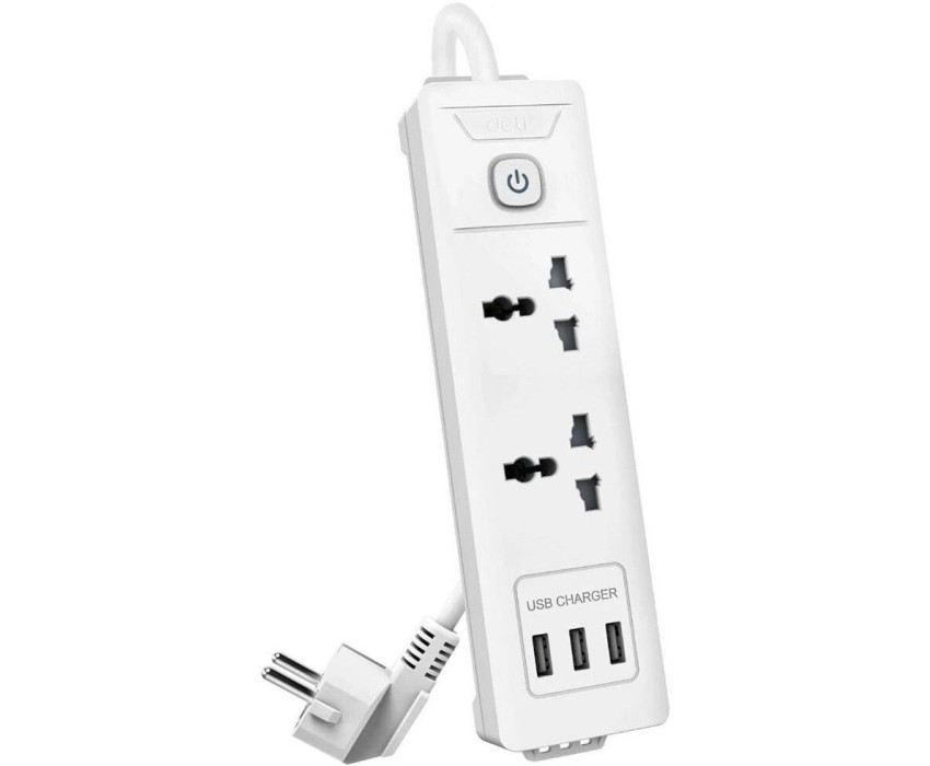 DELI универсальный ET407/ 3розетки + 3USB , 2 м