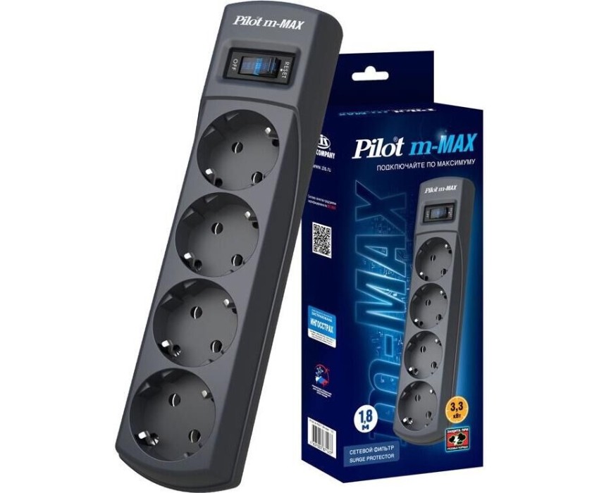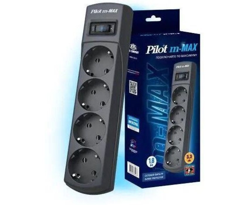 PILOT m-MAX 1.8м (4 розетки) серый (коробка)