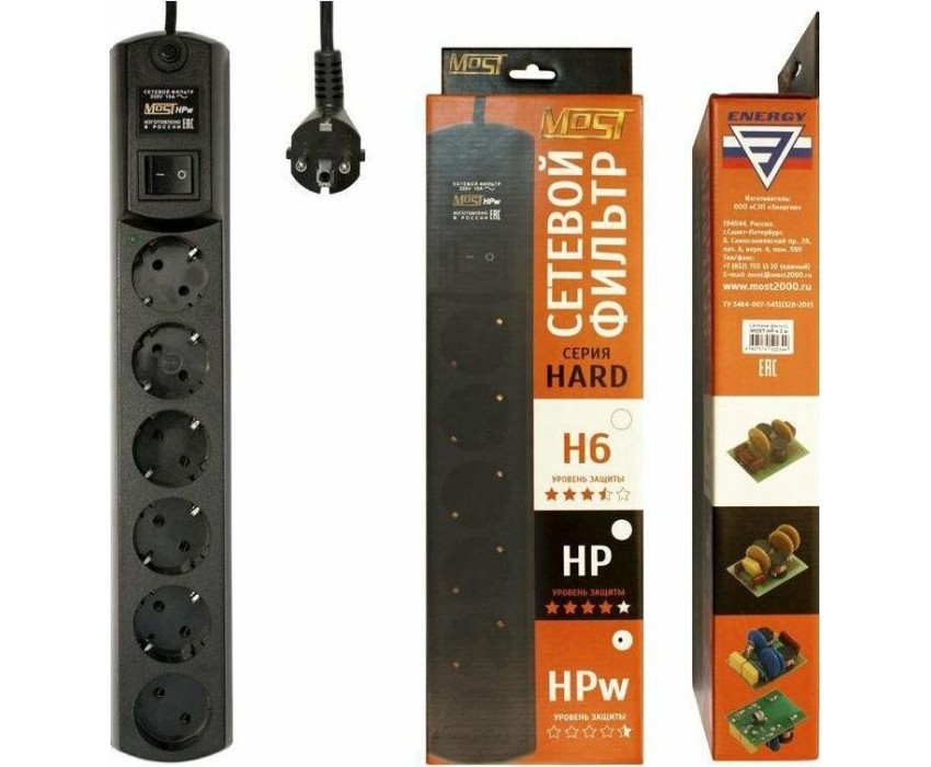 Сетевой фильтр MOST Сетевой фильтр HPw, 2м, черный [ hpw 2м чер]