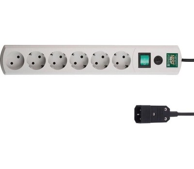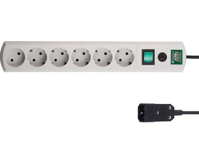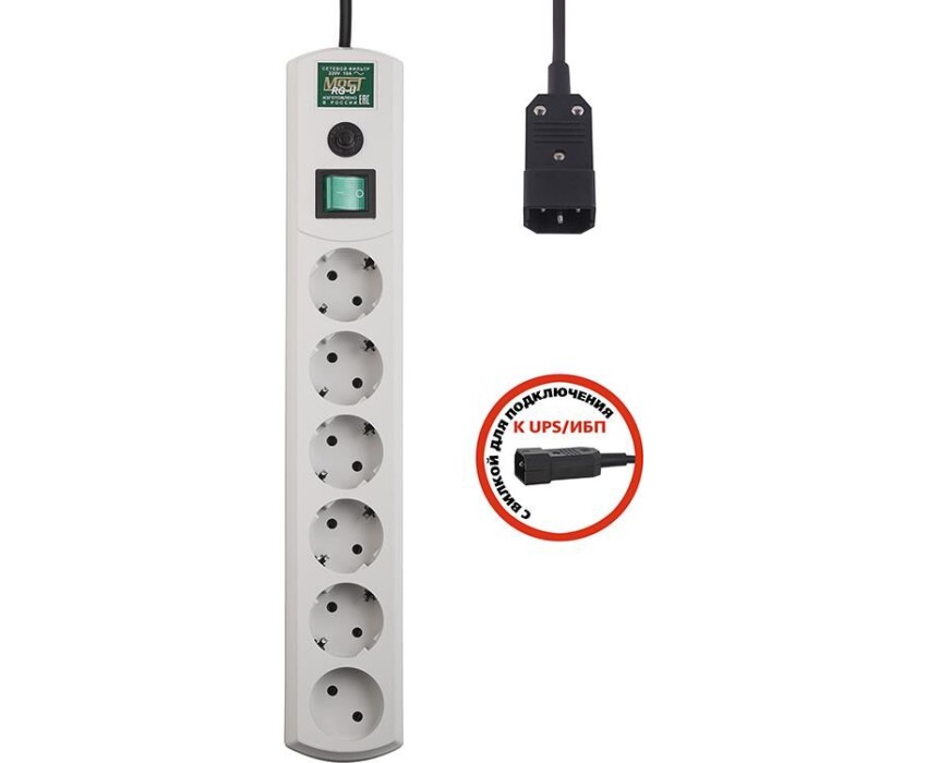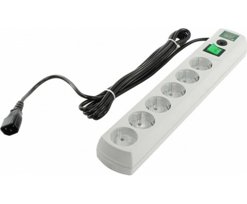 Входная вилка, тип: IEC320 (Для ИБП). Длина шнура: 3. Максимальный ток нагрузки: 10. Максимальная нагрузка: 2200. Номинальная мощность: 2200. Номинальное напряжение питающей сети: 220. Частота сети: 50. Максимальный импульсный ток помехи: 1200. Подавление импульсных помех: да. Подавление высокочастотных помех: да. Максимальная рассеиваемая энергия: 350. Защита от короткого замыкания: термобиметаллический предохранитель. Особенности: Корпус из ударопрочного негорючего пластика ABS. Возможность крепления к поверхности. Широкий выключатель с индикацией (отключает обе силовые линии: фаза, 0). Количество выходных розеток: 6. Габариты упаковки (ед) ДхШхВ: 0.39x0.12x0.045. Вес упаковки (ед): 0.59. Гарантия: 36 мес.. Цвет: белый. Максимальная нагрузка: 2200 Вт. Номинальная мощность: 2200 ВA. Количество выходных розеток: 6. Длина шнура: 3 м. Входная вилка: IEC320 (Для ИБП)