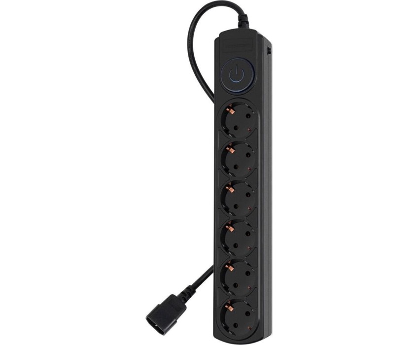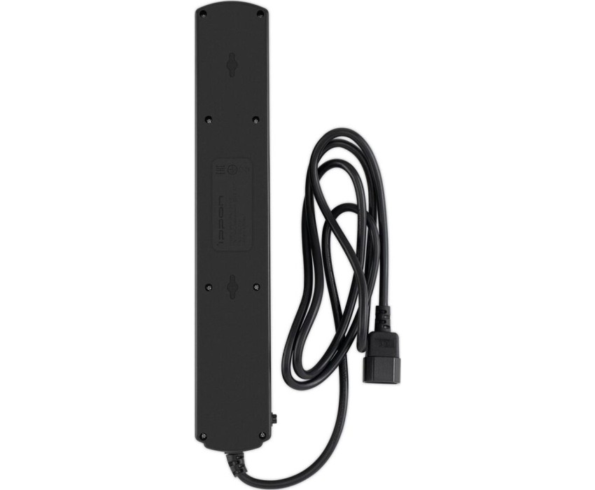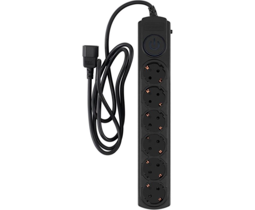 Входная вилка, тип: IEC320 (Для ИБП). Длина шнура: 1.8. Максимальный ток нагрузки: 10. Максимальная нагрузка: 2200. Номинальное напряжение питающей сети: 220. Частота сети: 50. Максимальный импульсный ток помехи: 4500. Подавление импульсных помех: да. Подавление высокочастотных помех: да. Максимальная рассеиваемая энергия: 150. Защита от короткого замыкания: биметаллический размыкатель. Защита от перегрева: Автоматический (термобиметаллический) предохранитель. Особенности: 6 евророзеток с заземлением. Входная вилка IEC 320 (для подключения к ИБП). Защита от перегрузки. Защита от импульсов высокого напряжения. Защита от перетирания провода в месте входа в корпус фильтра. Ударопрочный негорючий корпус. Кнопка питания с индикатором сети.. Количество выходных розеток: 6. Габариты упаковки (ед) ДхШхВ: 0.37x0.1x0.06. Вес упаковки (ед): 0.52. Гарантия: 24 мес.. Цвет: черный. Входная вилка: IEC320 (Для ИБП). Количество выходных розеток: 6. Максимальная нагрузка: 2200 Вт. Длина шнура: 1.8 м
