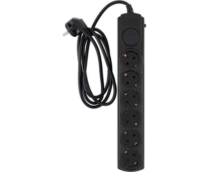 Входная вилка, тип: EURO. Длина шнура: 1.8. Максимальный ток нагрузки: 10. Максимальная нагрузка: 2200. Номинальное напряжение питающей сети: 220. Частота сети: 50. Максимальный импульсный ток помехи: 4500. Подавление высокочастотных помех: да. Максимальная рассеиваемая энергия: 150. Защита от короткого замыкания: биметаллический размыкатель. Защита от перегрева: Автоматический (термобиметаллический) предохранитель. Особенности: 6 евророзеток с заземлением. Входная вилка Schuko. Защита от перегрузки. Защита от импульсов высокого напряжения. Защита от перетирания провода в месте входа в корпус фильтра. Ударопрочный негорючий корпус. Кнопка питания с индикатором сети. Отверстия на корпусе сзади для удобного монтажа на стену.. Количество выходных розеток: 6. Габариты упаковки (ед) ДхШхВ: 0.36x0.095x0.055. Вес упаковки (ед): 0.52. Гарантия: 24 мес.. Цвет: черный. Количество выходных розеток: 6. Максимальная нагрузка: 2200 Вт. Длина шнура: 1.8 м. Входная вилка: EURO