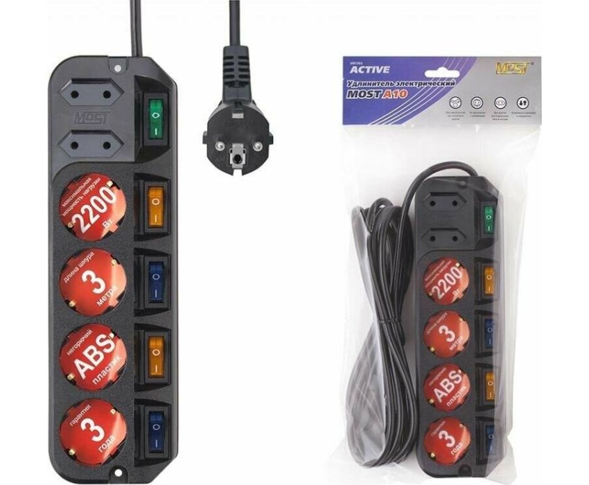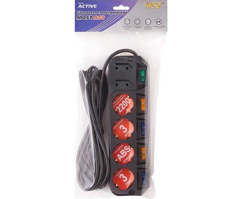 MOST Сетевой удлинитель A10, 3м, черный [ a10-ч 3м]