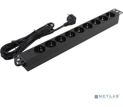 [Сетевой фильтр] Exegate EX280851RUS Блок розеток ExeGate ServerPro PDU-19H905 Al-9S-EU3, 19",1U,алюм, 9Schuko, евровилка, 3м