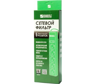ЮНИВОЛЬТ Сетевой фильтр 00-00000389, 1.5м, белый