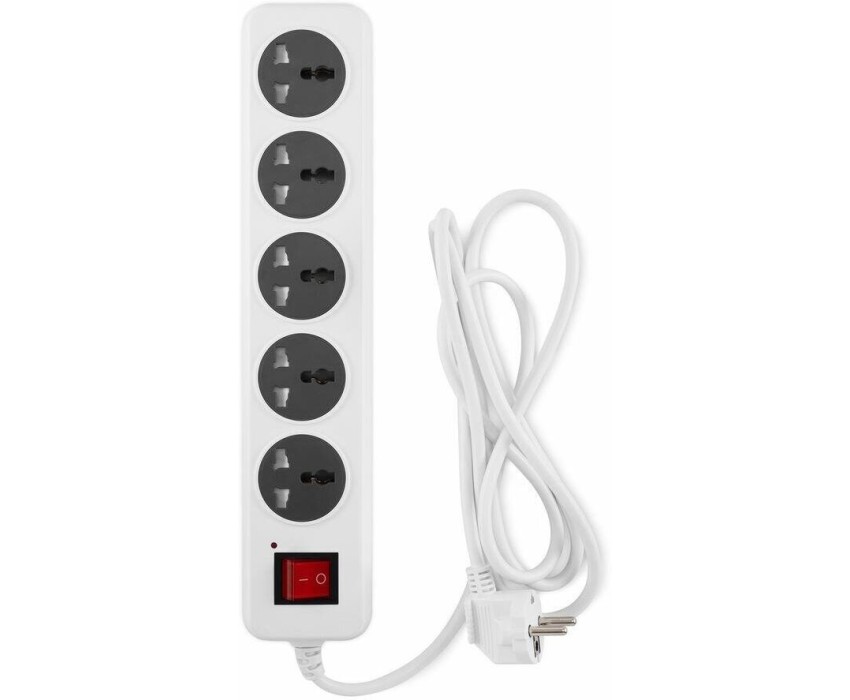 Входная вилка, тип: EURO. Длина шнура: 1.8. Максимальный ток нагрузки: 10. Максимальная нагрузка: 2200. Номинальное напряжение питающей сети: 220. Частота сети: 50. Максимальный импульсный ток помехи: 4500. Максимальная рассеиваемая энергия: 107. Количество выходных розеток: 5. Габариты упаковки (ед) ДхШхВ: 0.365x0.112x0.055. Вес упаковки (ед): 0.55. Выходная вилка, тип: Универсальная. Гарантия: 12 мес.. Цвет: белый/серый. Тип поддерживаемой вилки для универсальной розетки: Type A (USA/China), Type G (Britain/HK), Type I1 (China/India). Максимальная нагрузка: 2200 Вт. Входная вилка: EURO. Выходная вилка: Универсальная. Количество выходных розеток: 5. Длина шнура: 1.8 м