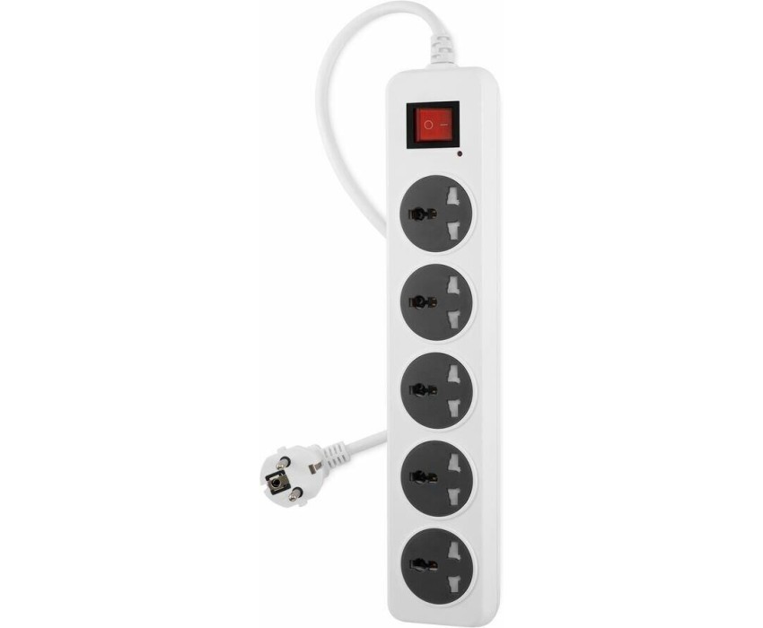 Входная вилка, тип: EURO. Длина шнура: 5. Максимальный ток нагрузки: 10. Максимальная нагрузка: 2200. Номинальное напряжение питающей сети: 220. Частота сети: 50. Максимальная рассеиваемая энергия: 107. Количество выходных розеток: 5. Габариты упаковки (ед) ДхШхВ: 0.367x0.121x0.056. Вес упаковки (ед): 0.65. Выходная вилка, тип: Универсальная. Гарантия: 12 мес.. Цвет: белый/серый. Тип поддерживаемой вилки для универсальной розетки: Type A (USA/China), Type G (Britain/HK), Type I1 (China/India). Выходная вилка: Универсальная. Входная вилка: EURO. Количество выходных розеток: 5. Длина шнура: 5 м. Максимальная нагрузка: 2200 Вт