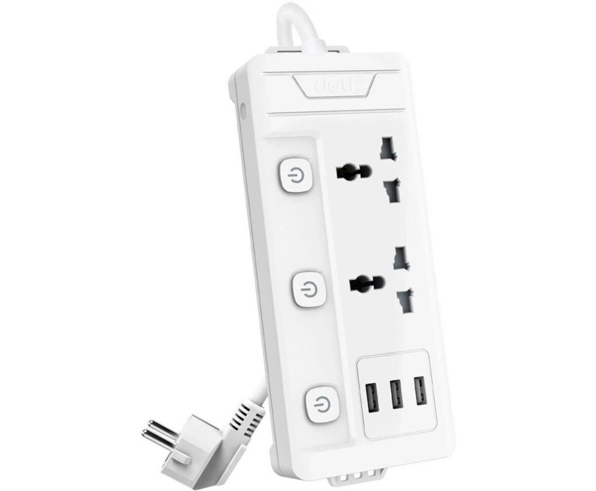DELI Сетевой фильтр универсальный ET409 / 2розетки + 3USB , 2 м