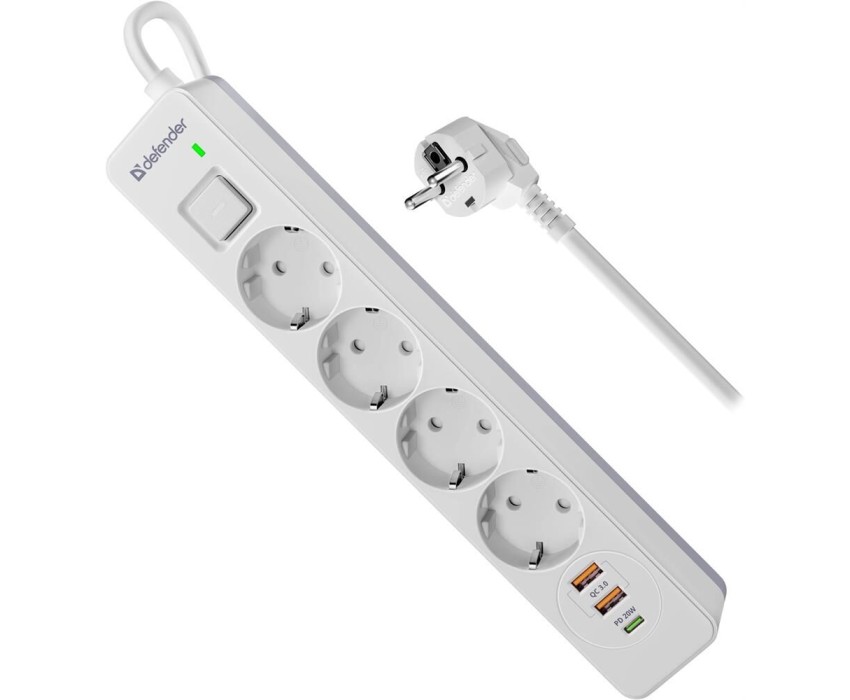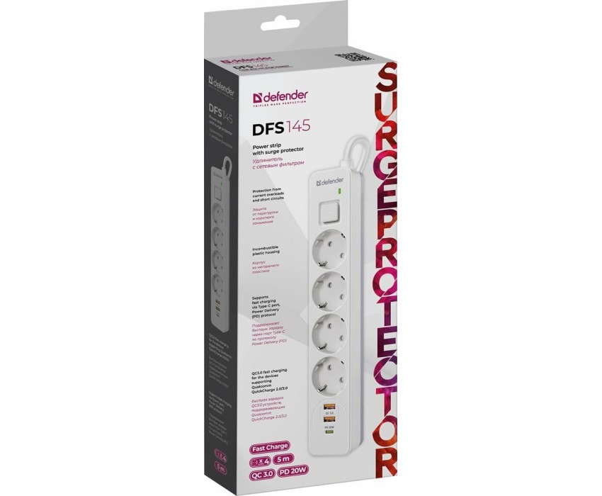 DEFENDER Сетевой фильтр DFS 145, 5м, белый [99435]