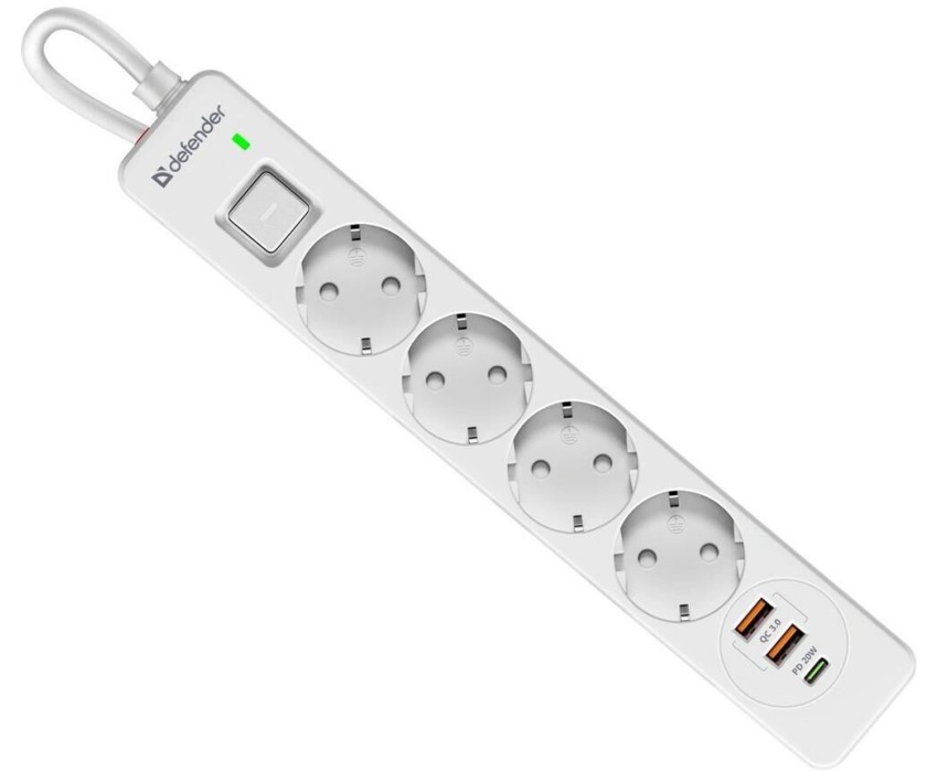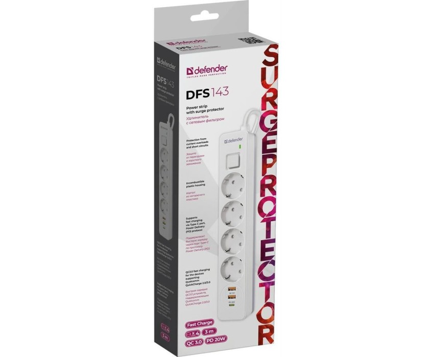 DEFENDER Сетевой фильтр DFS 143, 2м, белый [99434]