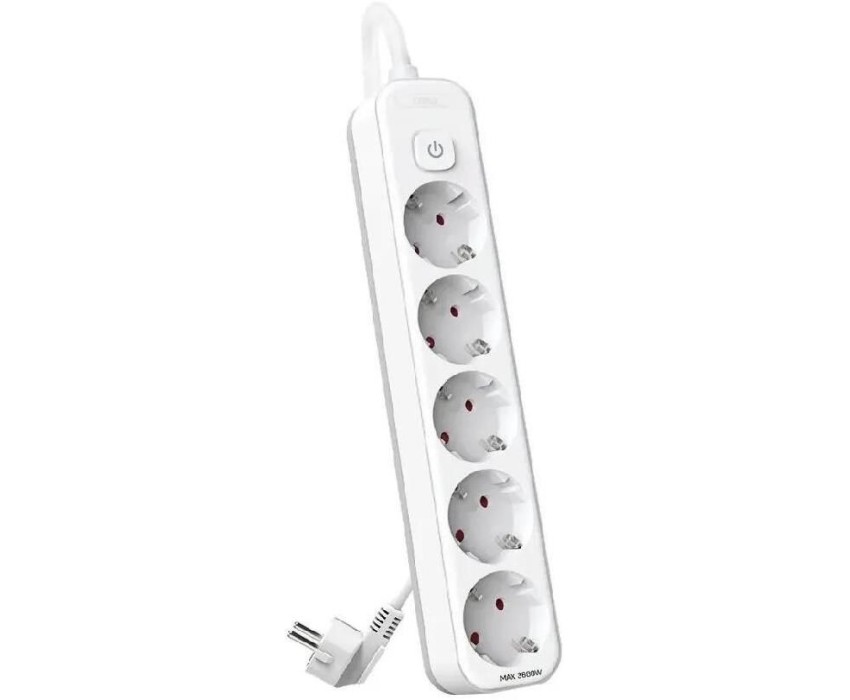 DELI Сетевой фильтр на евровилку ET439, 5м, белый