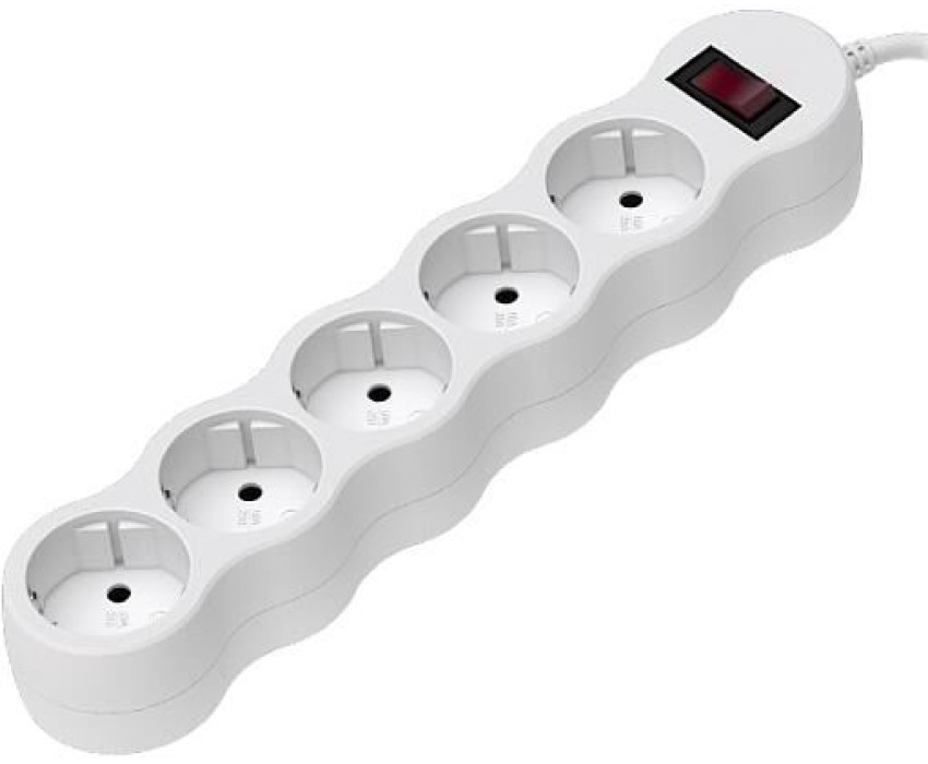 Сетевой фильтр с общим выключателем. Макс. мощность 2300Вт, 10А, 5 евророзеток с заземлением, защитные шторки, длина кабеля 1.8 метра. Цвет белый.