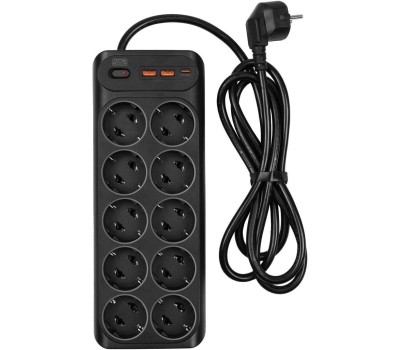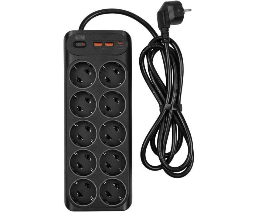 POWERCOM Сетевой фильтр SP-10 USB2A1СB 1.8м 1.8м (10 розеток) черный (коробка)
