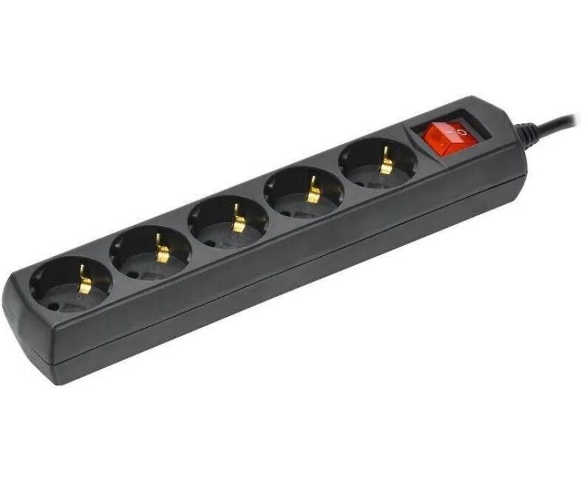 IEK Сетевой удлинитель У05В 3м (5 розеток) черный (пакет ПЭ)